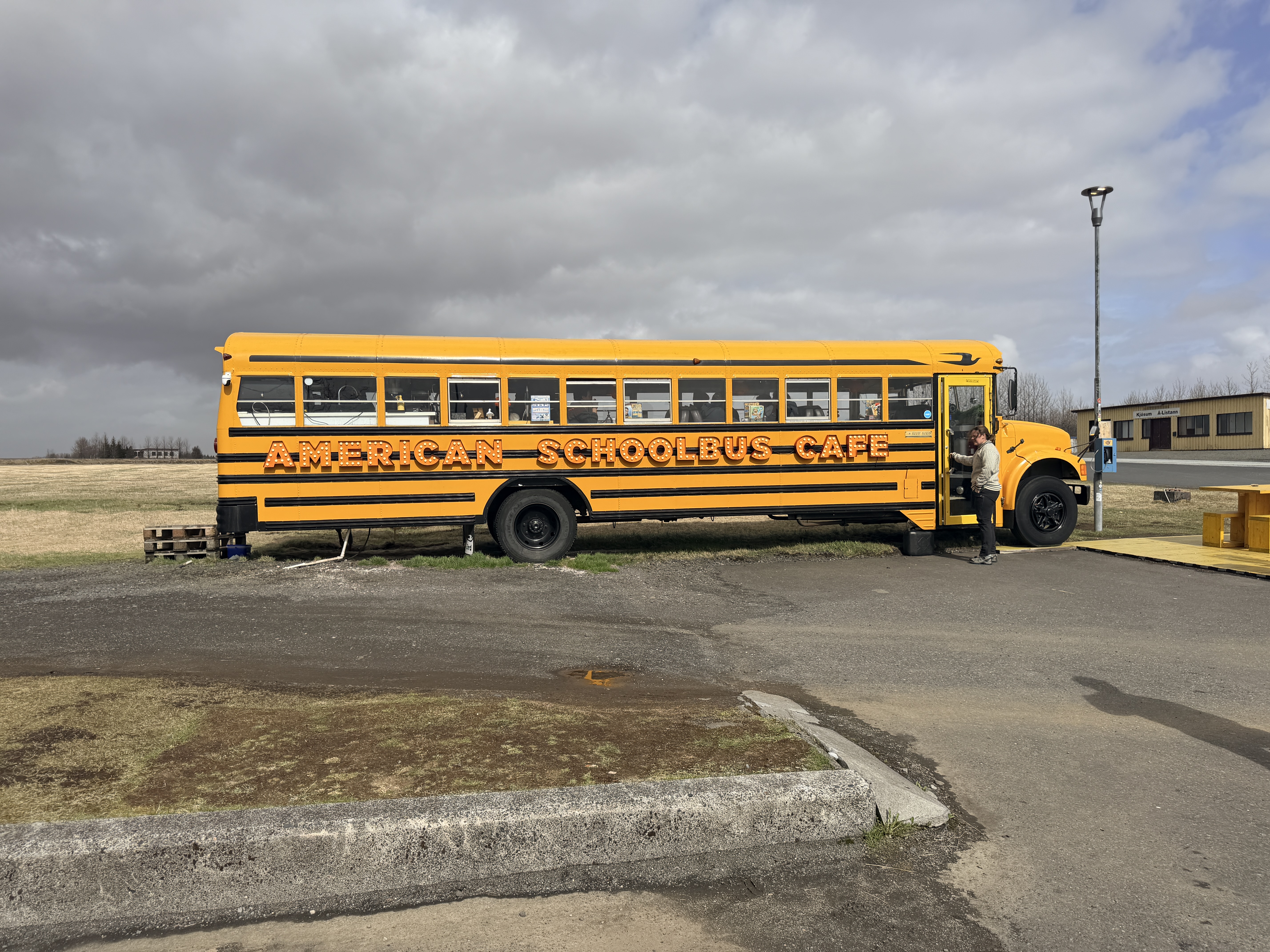 Old school bus turned into a unique café. It originally came from Pennsylvania, later ended up in Romania, and was restored before being brought to Iceland. Retro vibe and great atmosphere. We ordered a chicken panini, it tasted like curry, definitely worth the visit